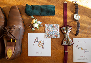 Des préparatifs à la fin de la cérémonie, incluant les photos de couple, de famille, et avec les témoins.
